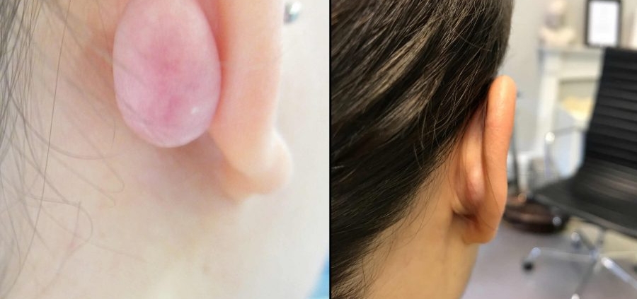 This leaves a residual lump which can then be treated with one of the other methods above such a steroid injection, pressure clips and silicone dressings or a combination.