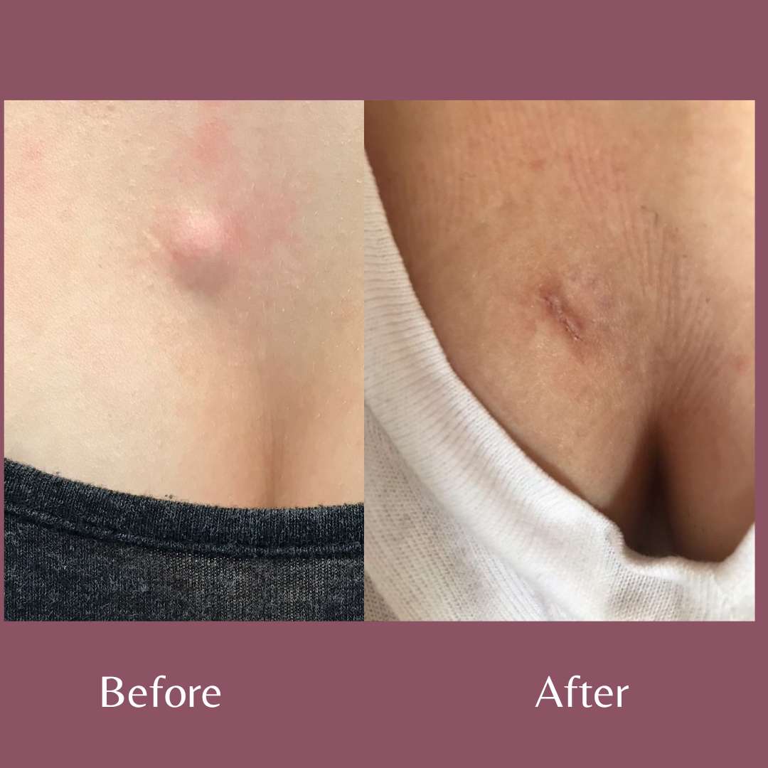 We are often asked if it is possible to reduce the scar or even remove your cyst without leaving a scar. Because the cyst is underneath the skin, it is not possible to get to it without going through the skin and so there will always be a scar to some degree, although it often fades so well that it is impossible to see.